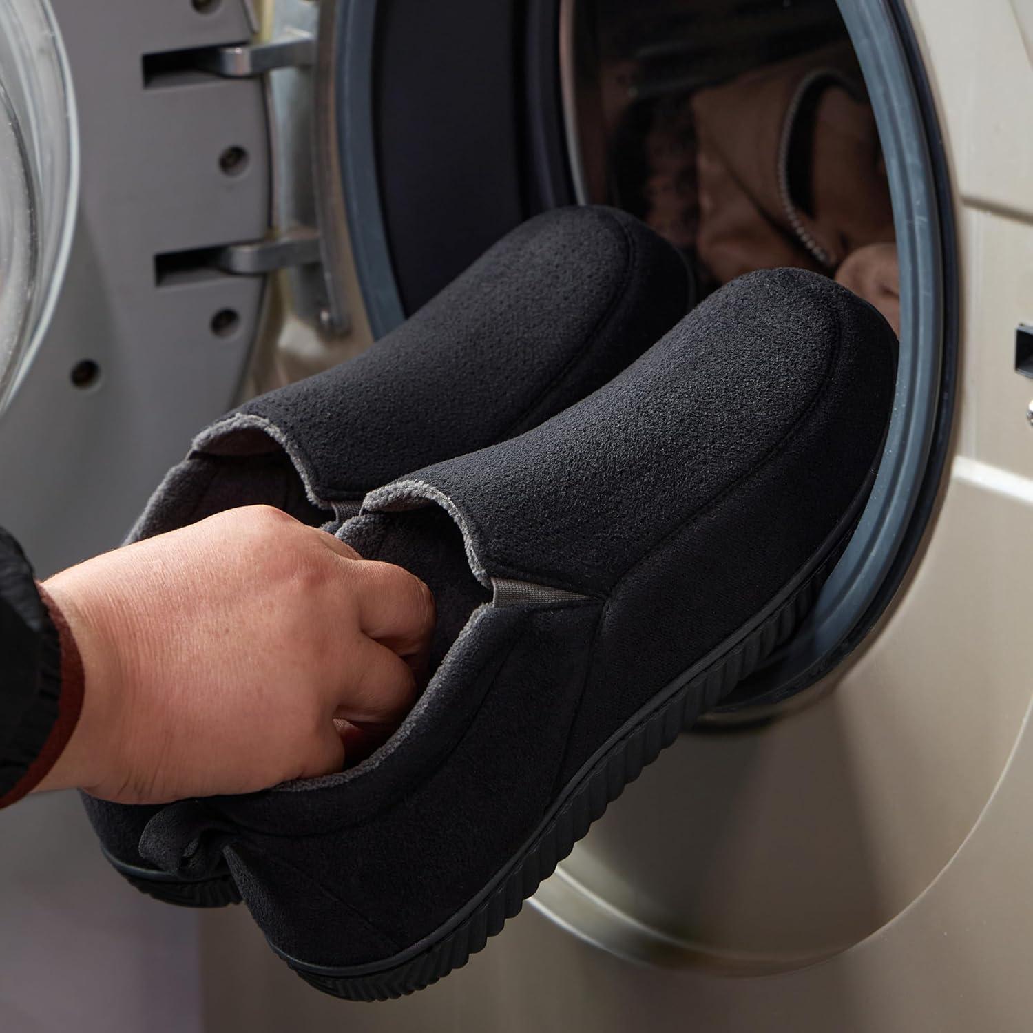 RockDove Men’s Closed-Back Memory Foam Slippers with Plush Lining Faux Suede Non-Slip Sole(Carbon Black)