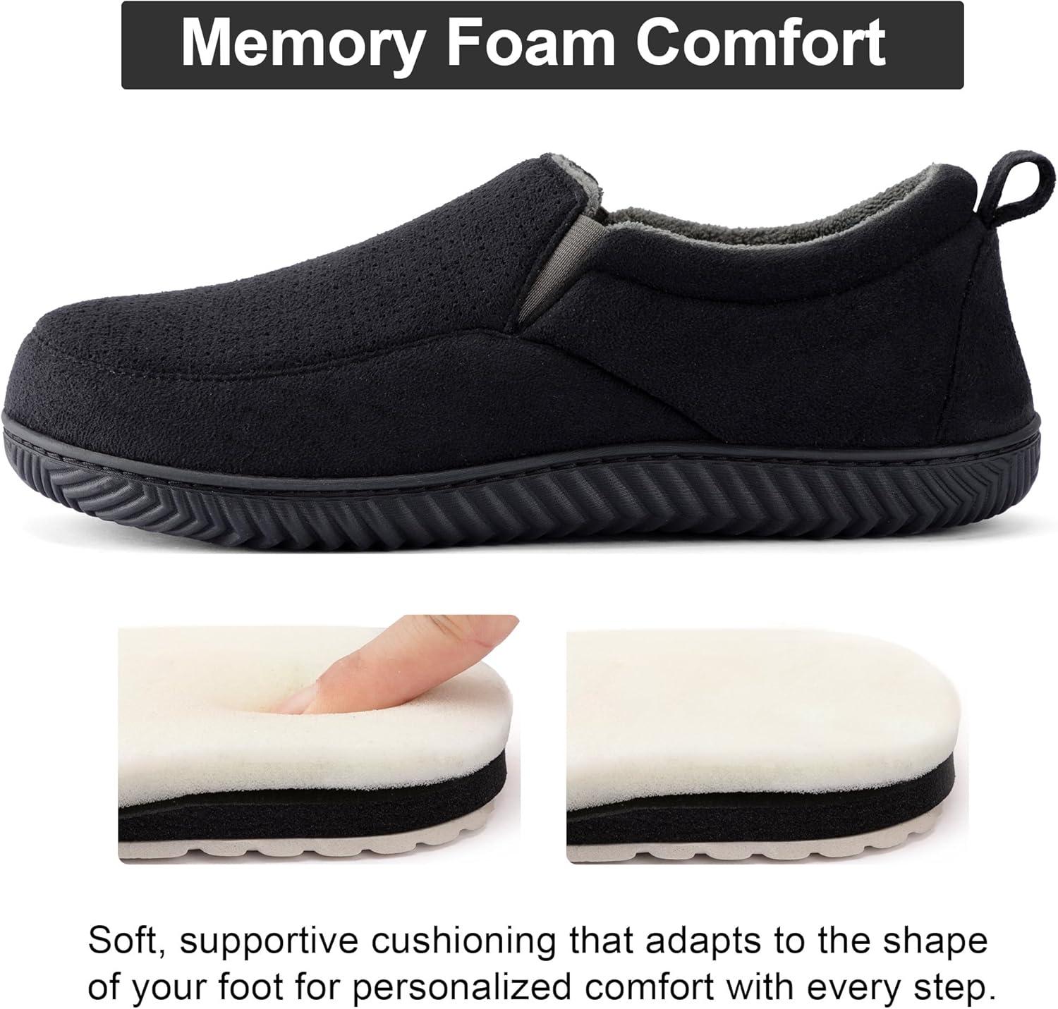 RockDove Men’s Closed-Back Memory Foam Slippers with Plush Lining Faux Suede Non-Slip Sole(Black)