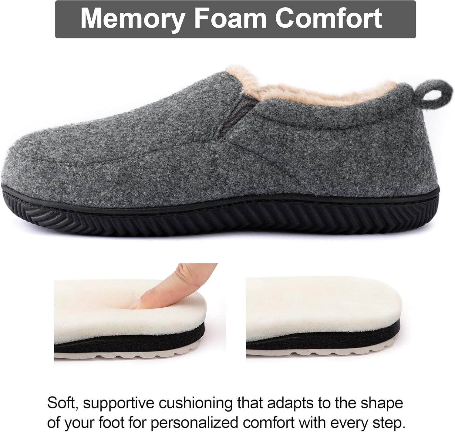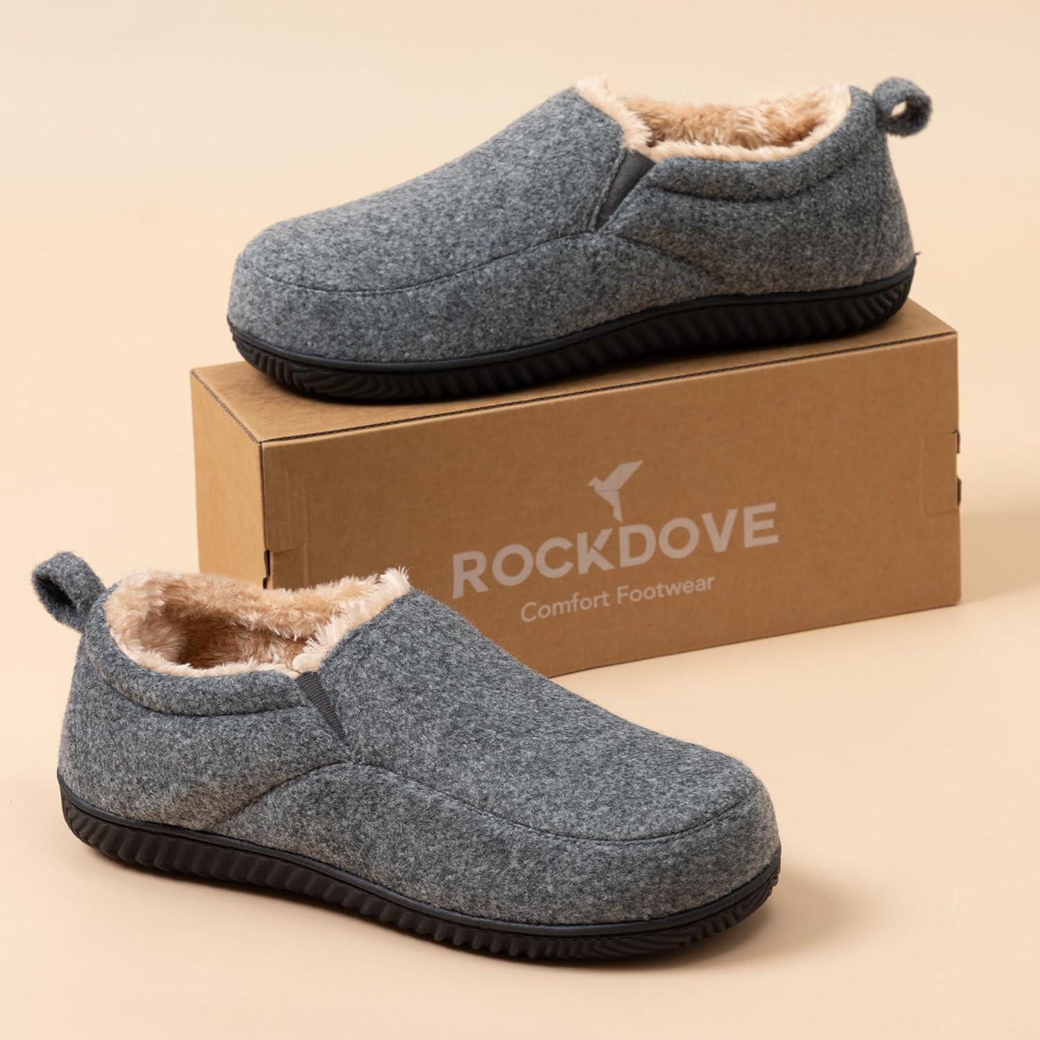 RockDove Men’s Closed-Back Memory Foam Slippers with Plush Lining Faux Suede Non-Slip Sole(Grey)