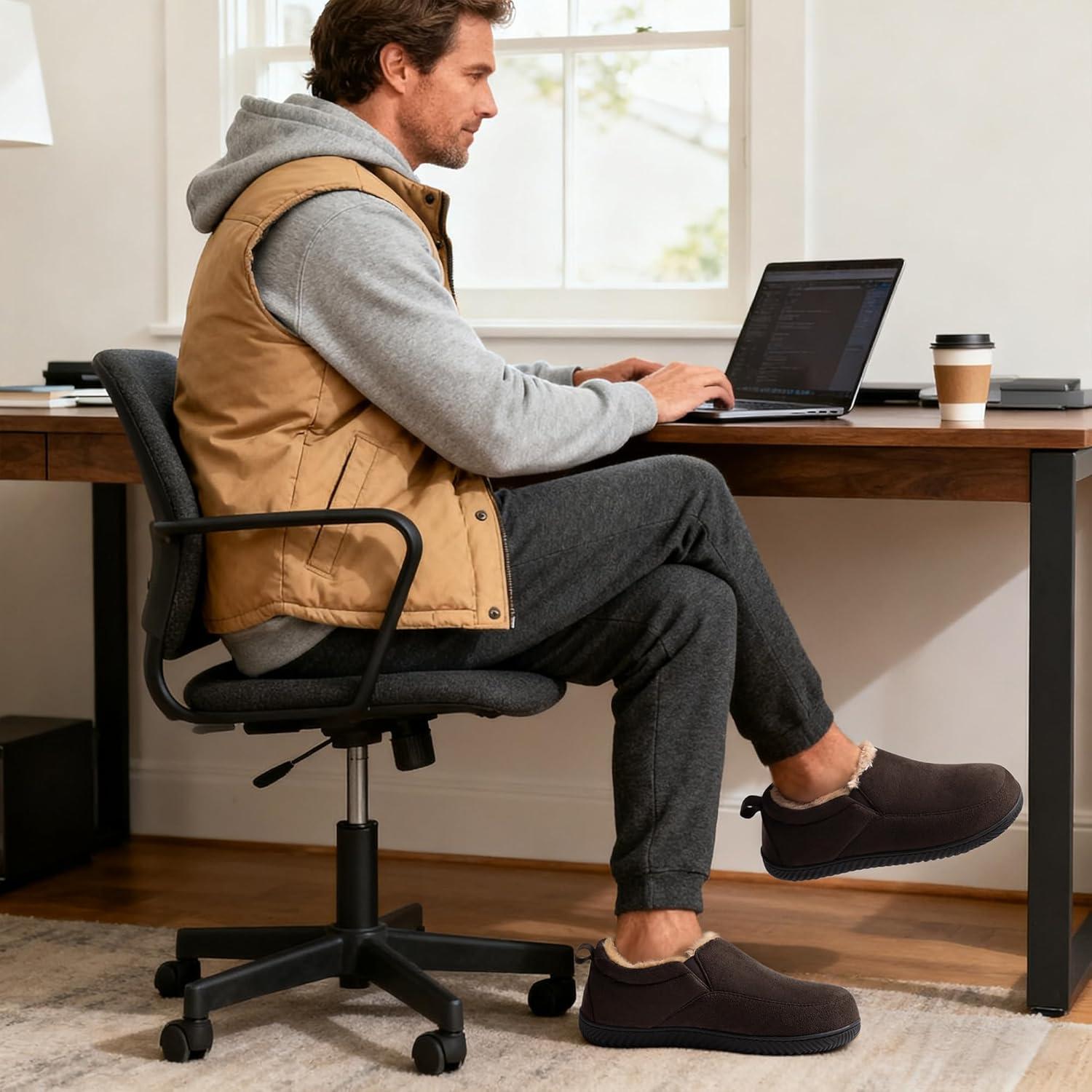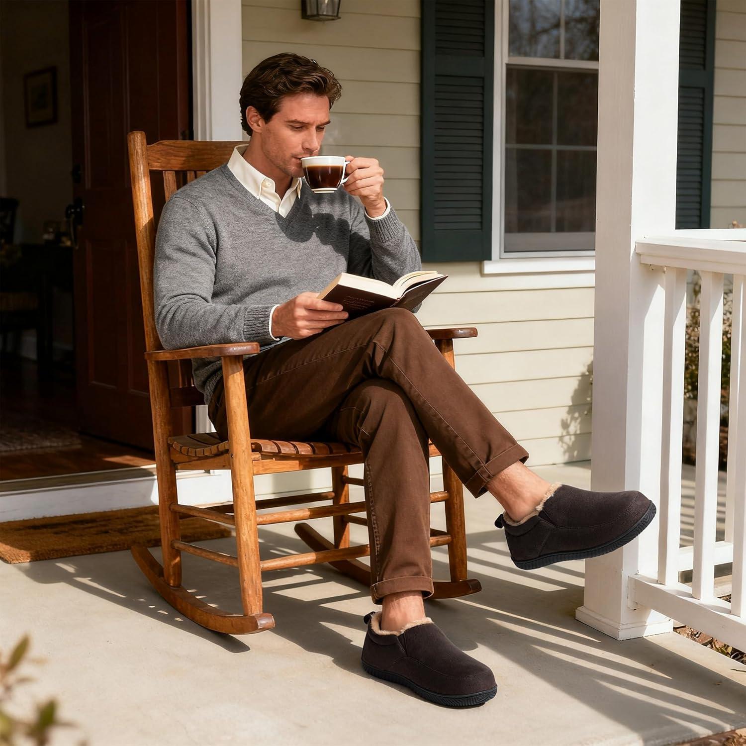 RockDove Men’s Closed-Back Memory Foam Slippers with Plush Lining Faux Suede Non-Slip Sole(Mocha)