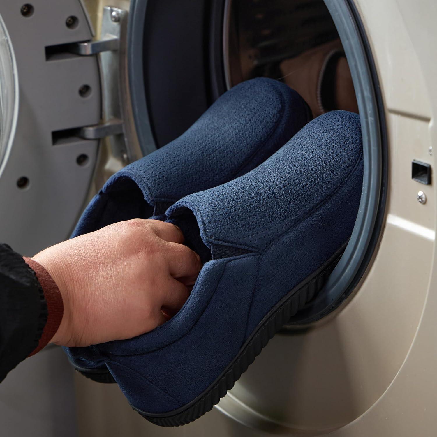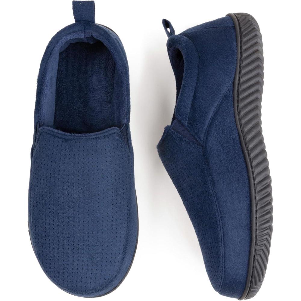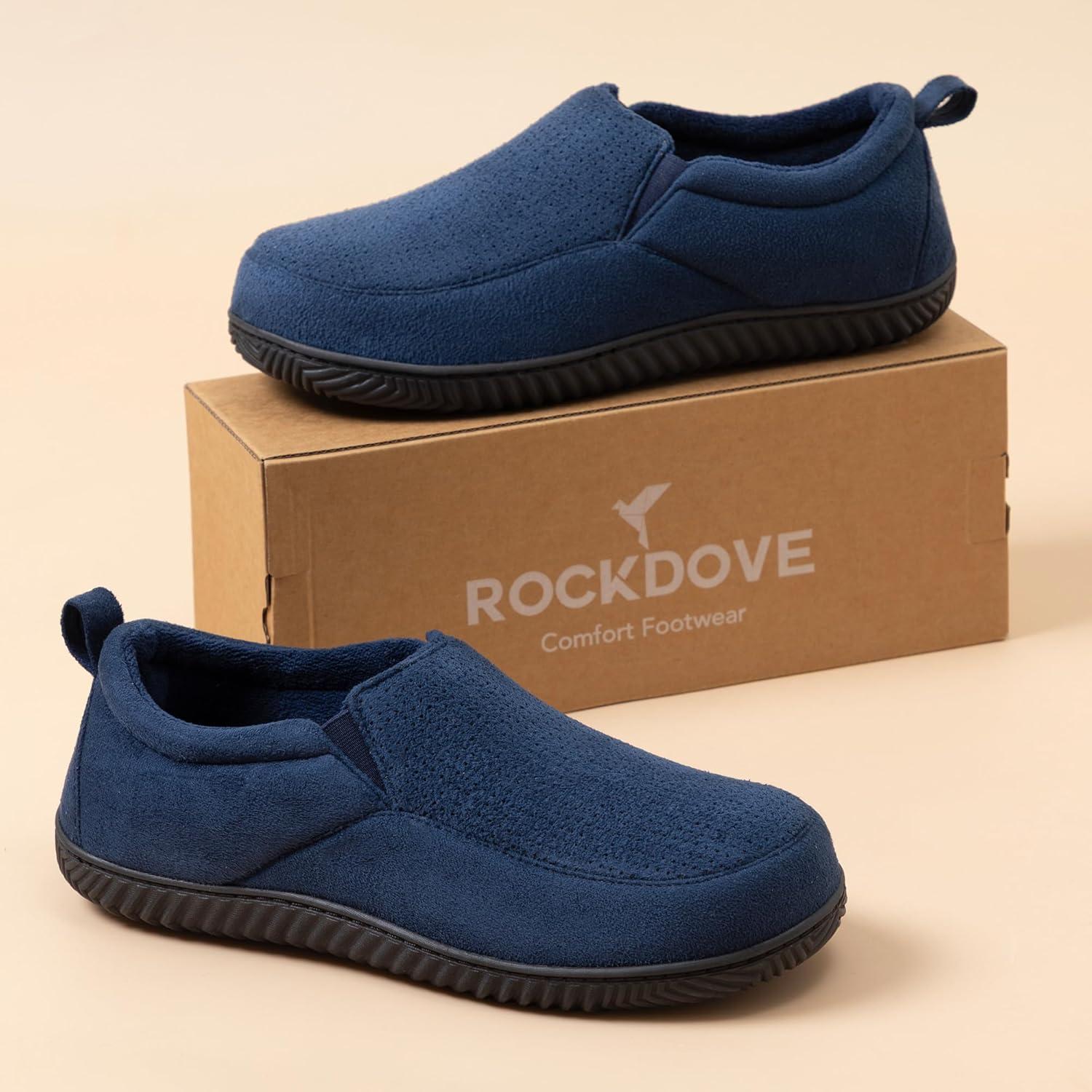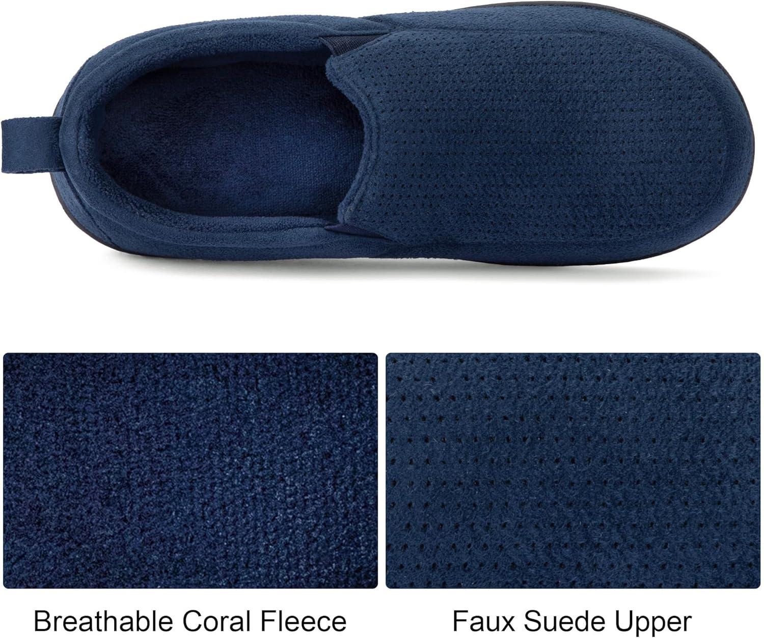 RockDove Men’s Closed-Back Memory Foam Slippers with Plush Lining Faux Suede Non-Slip Sole(Navy Blue)