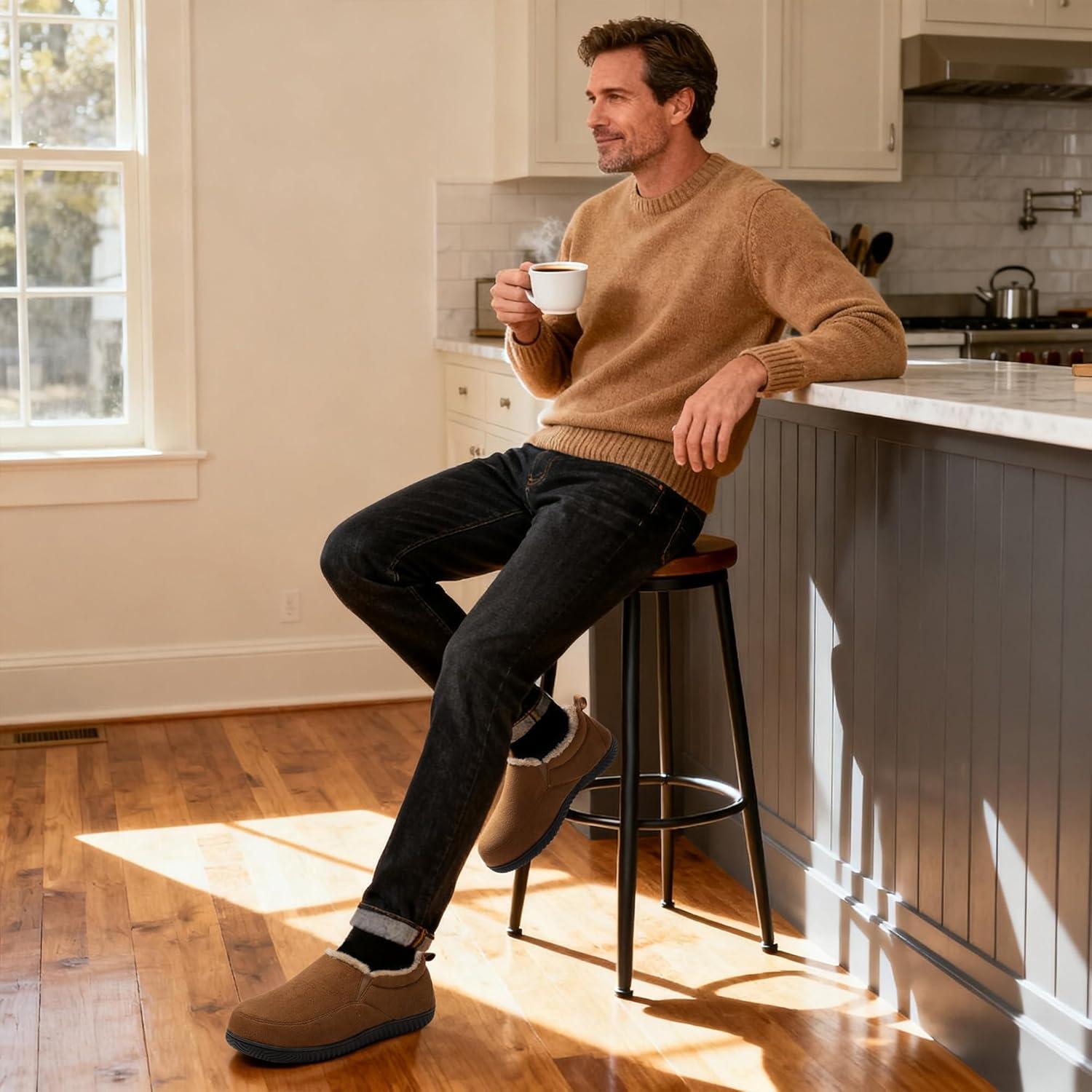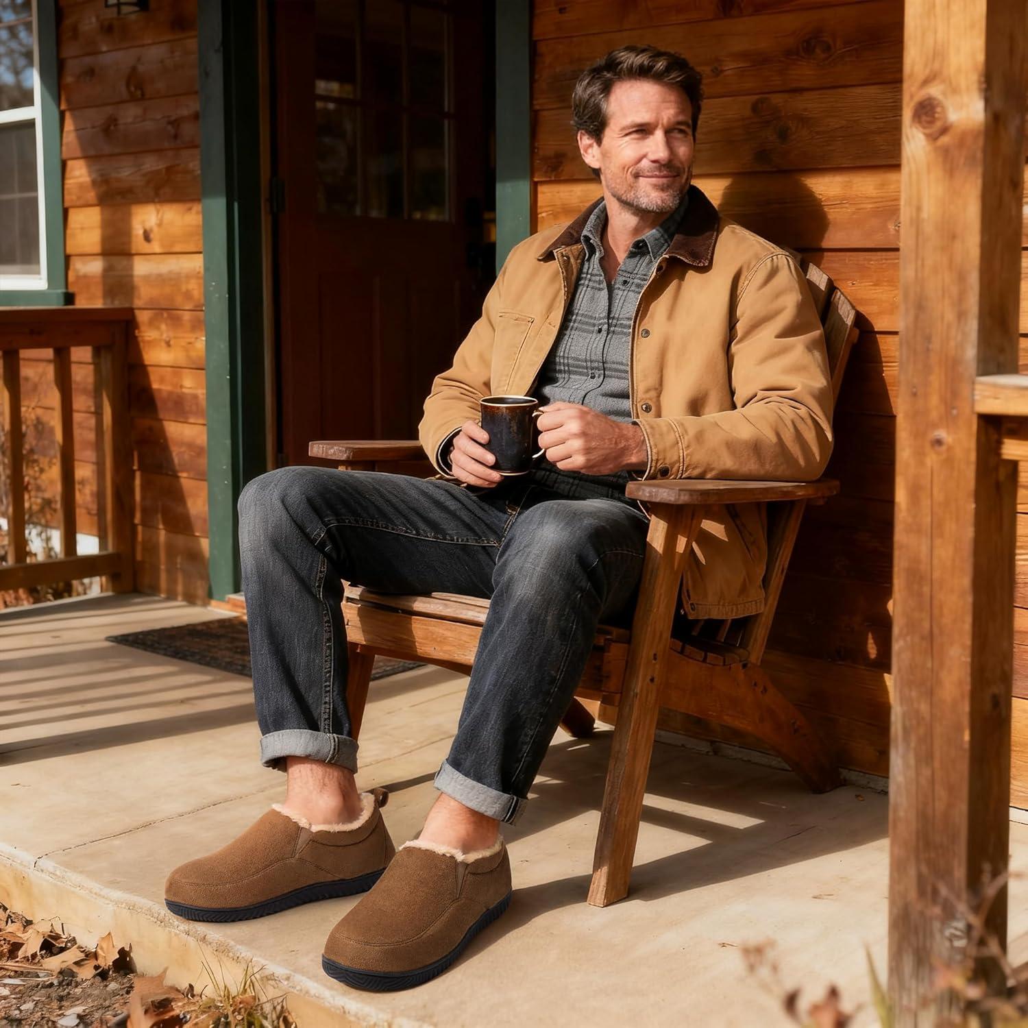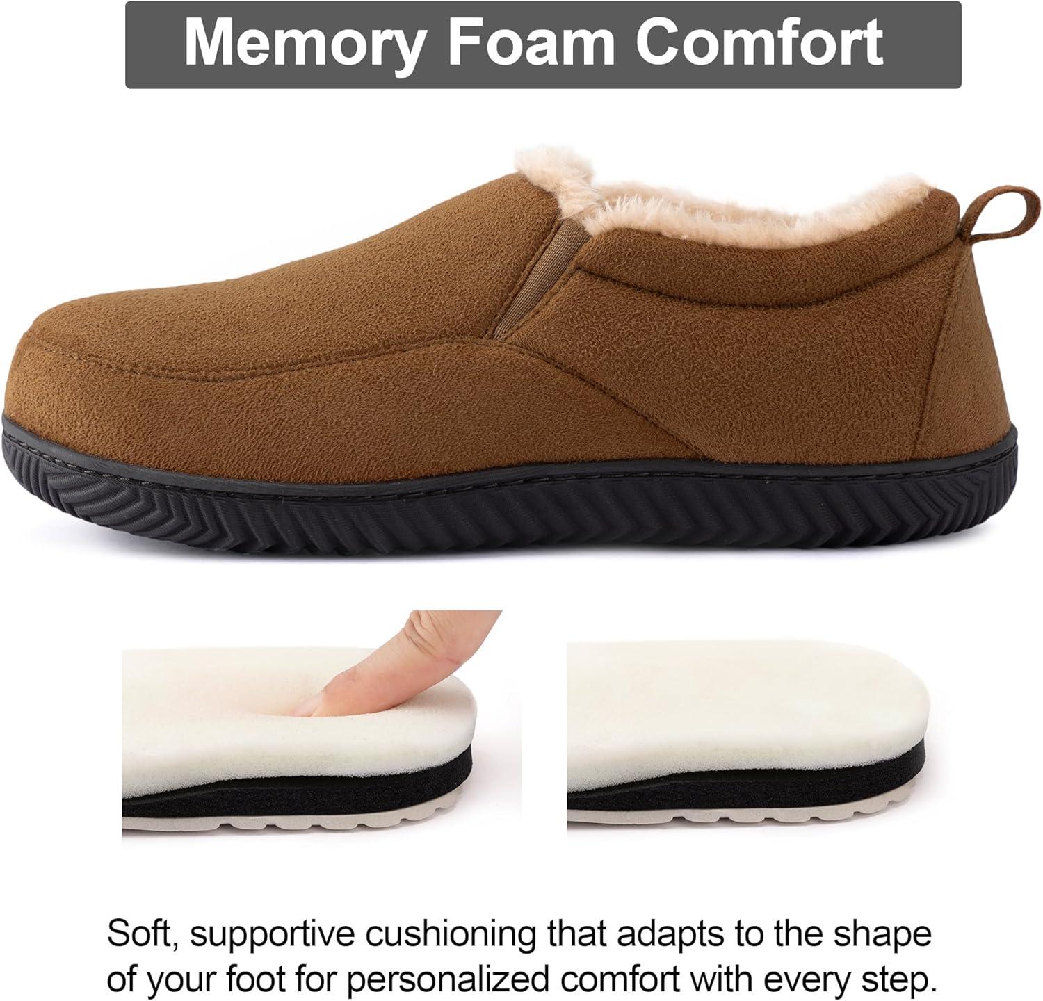 RockDove Men’s Closed-Back Memory Foam Slippers with Plush Lining Faux Suede Non-Slip Sole(Mocha)