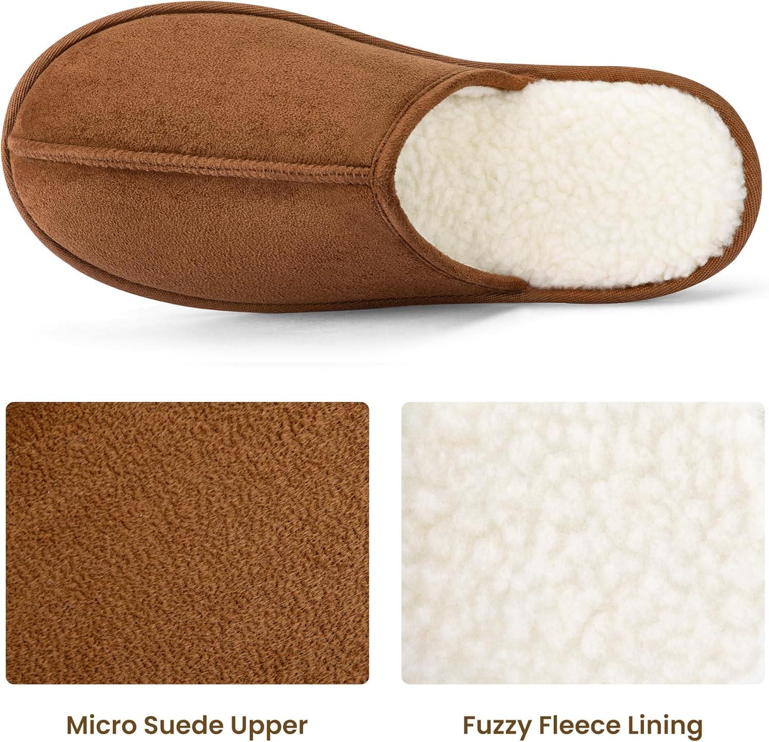 RockDove Men’s Drift Micro-Suede Scuff Slipper with Soft Sherpa Fleece Lining Memory Foam Insole Anti Slip Sole(Chestnut)
