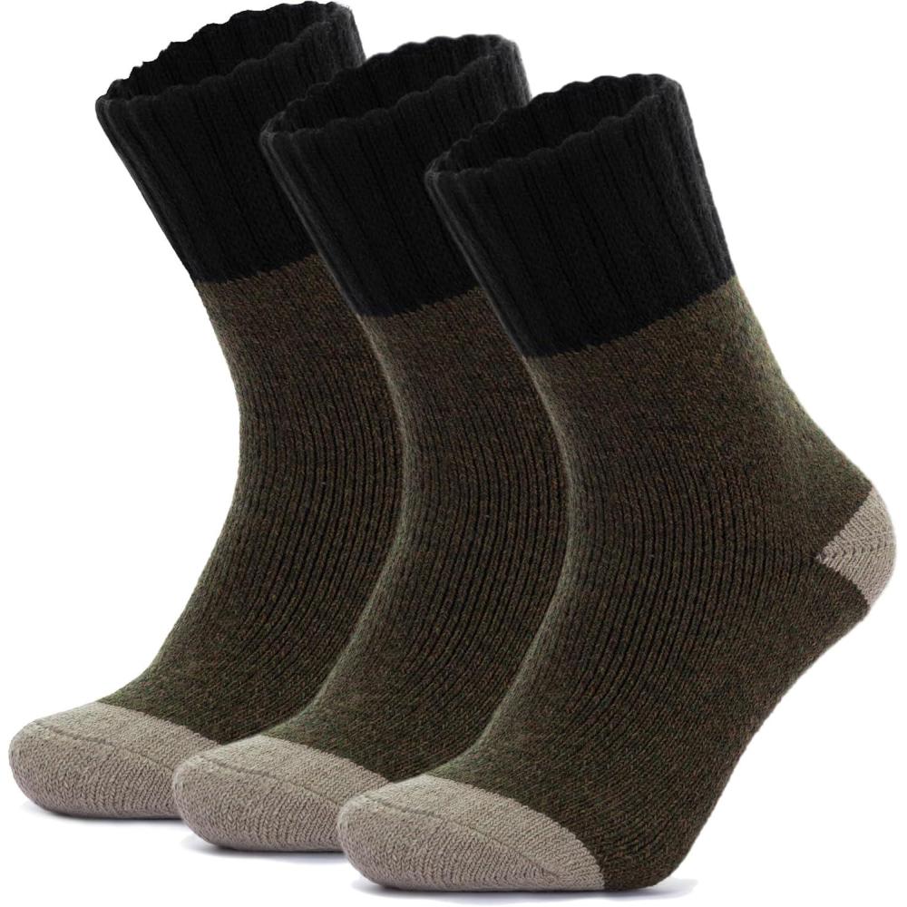 RockDove Men’s Thick Knit Cashmere Crew Socks(Green&grey&coffee)