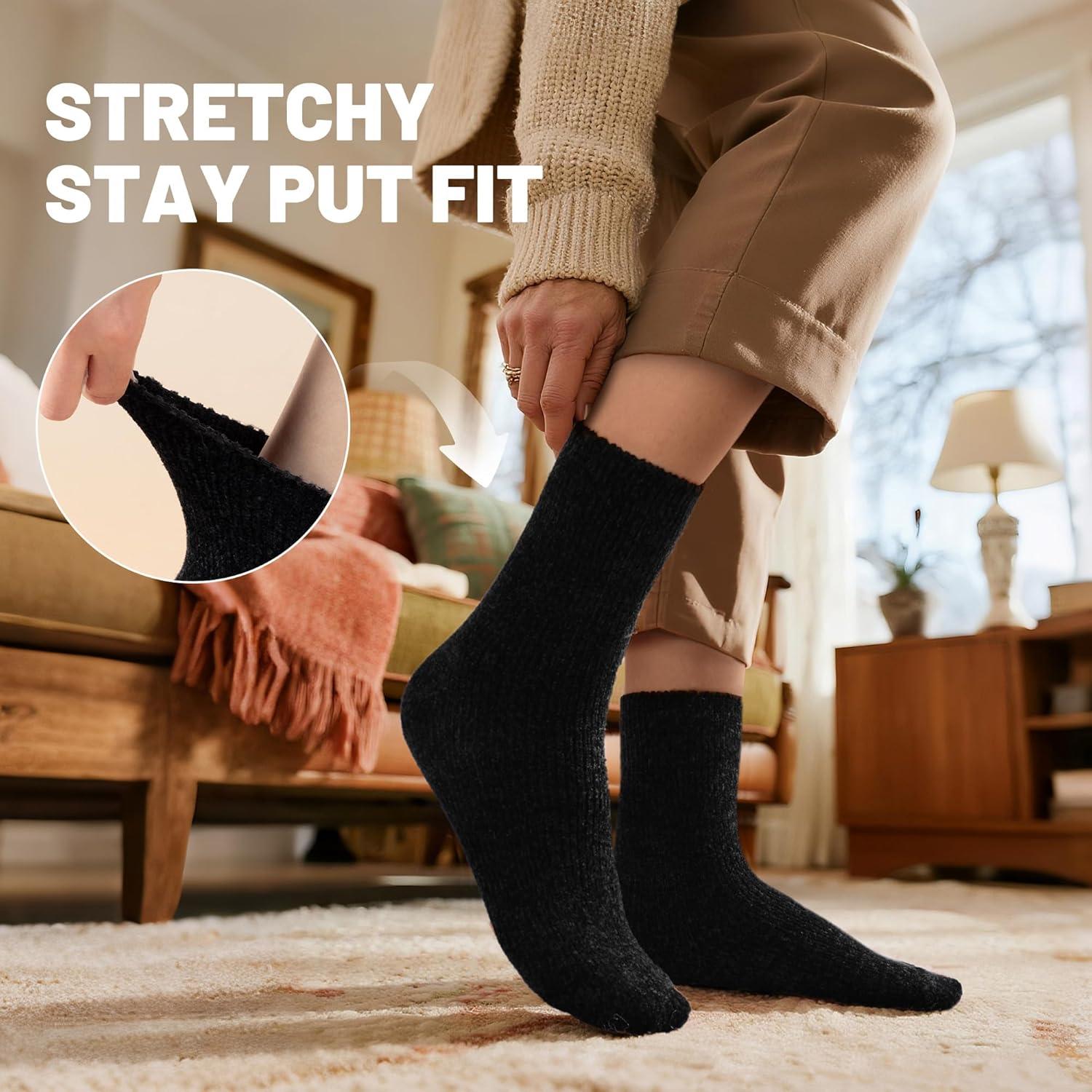 RockDove Women’s Cashmere Knit Calf Warm Stretchy Socks(Charcoal Black)