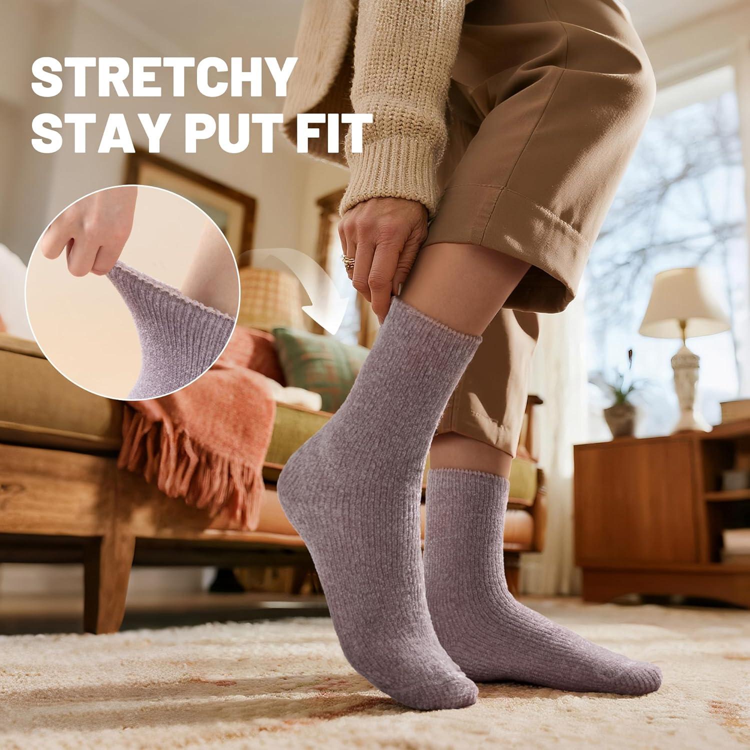 RockDove Women’s Cashmere Knit Calf Warm Stretchy Socks(Lavender&pink&gray)