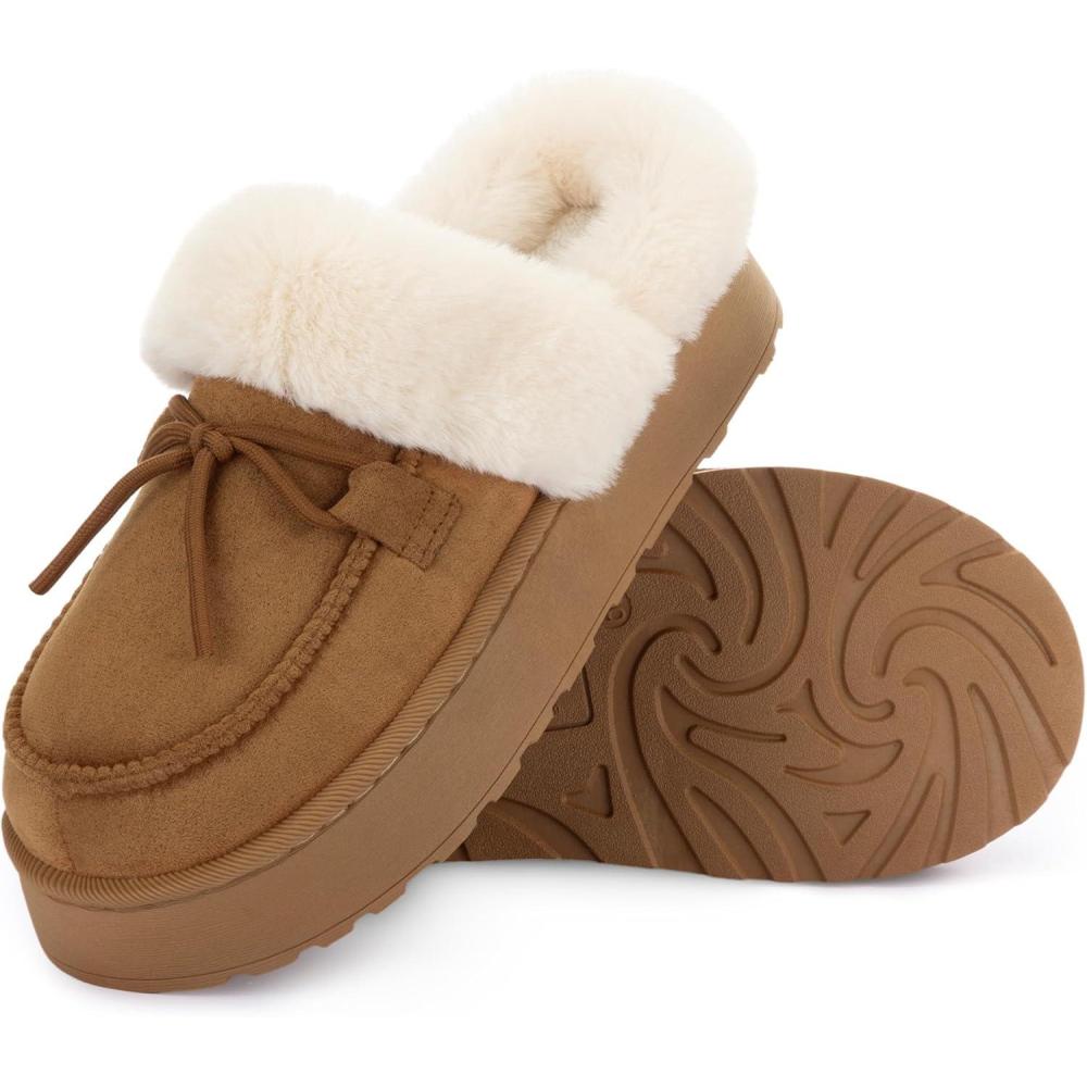 RockDove Women’s Microsuede Moc Toe Platform Memory Foam Slipper with Indoor/Oudoor sole(Chestnut)