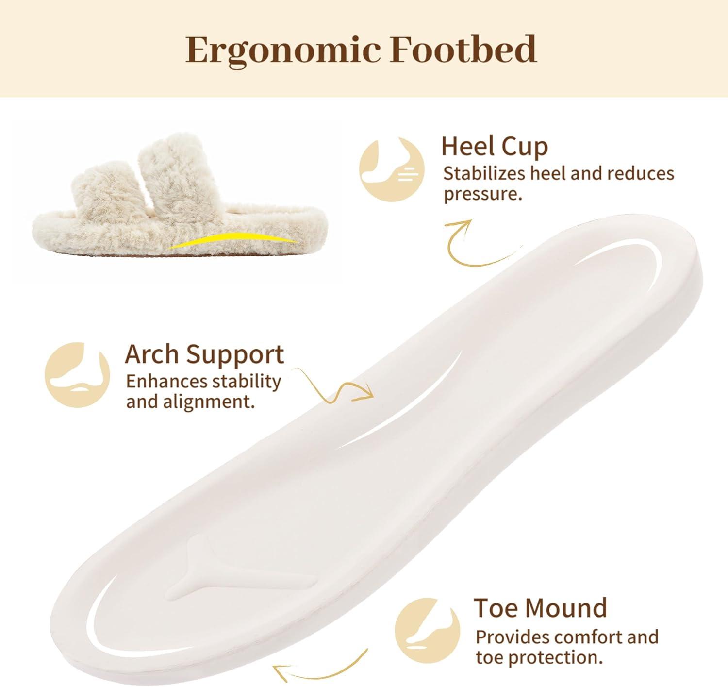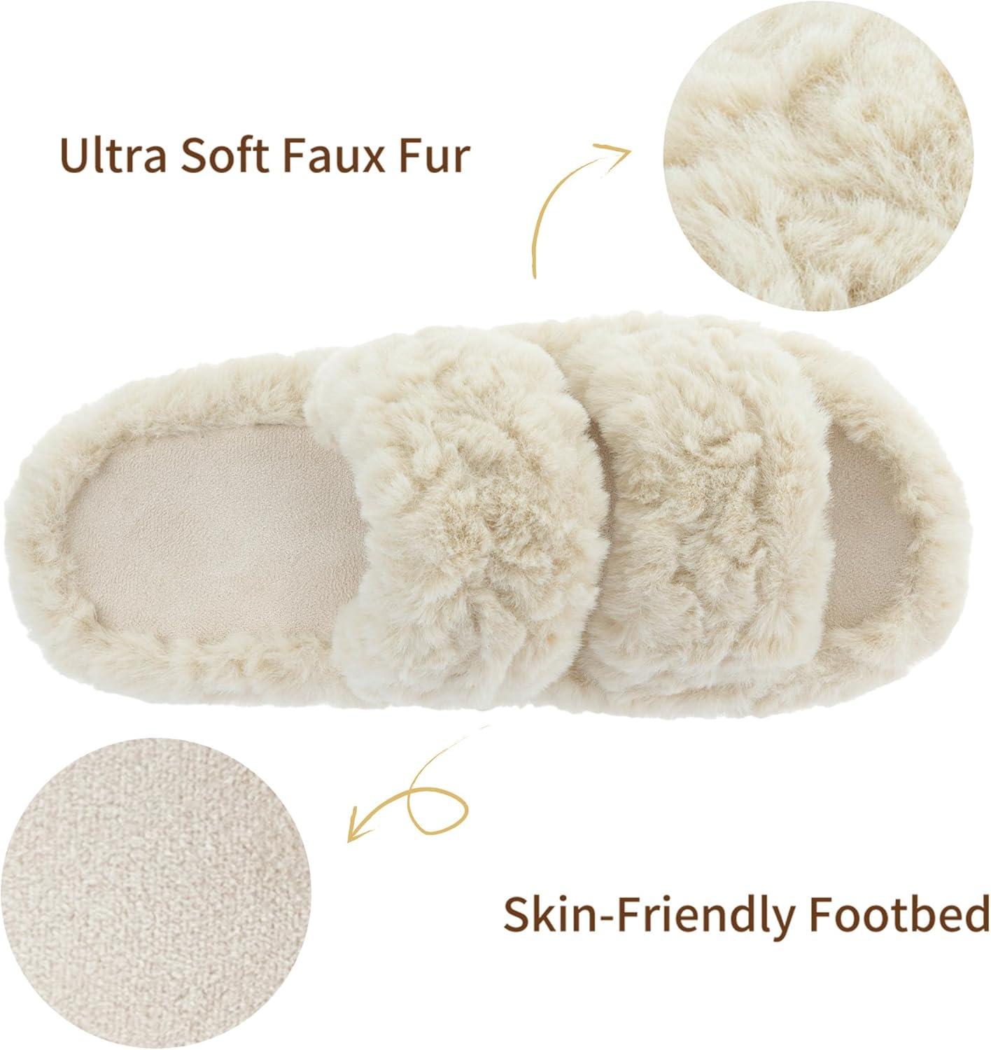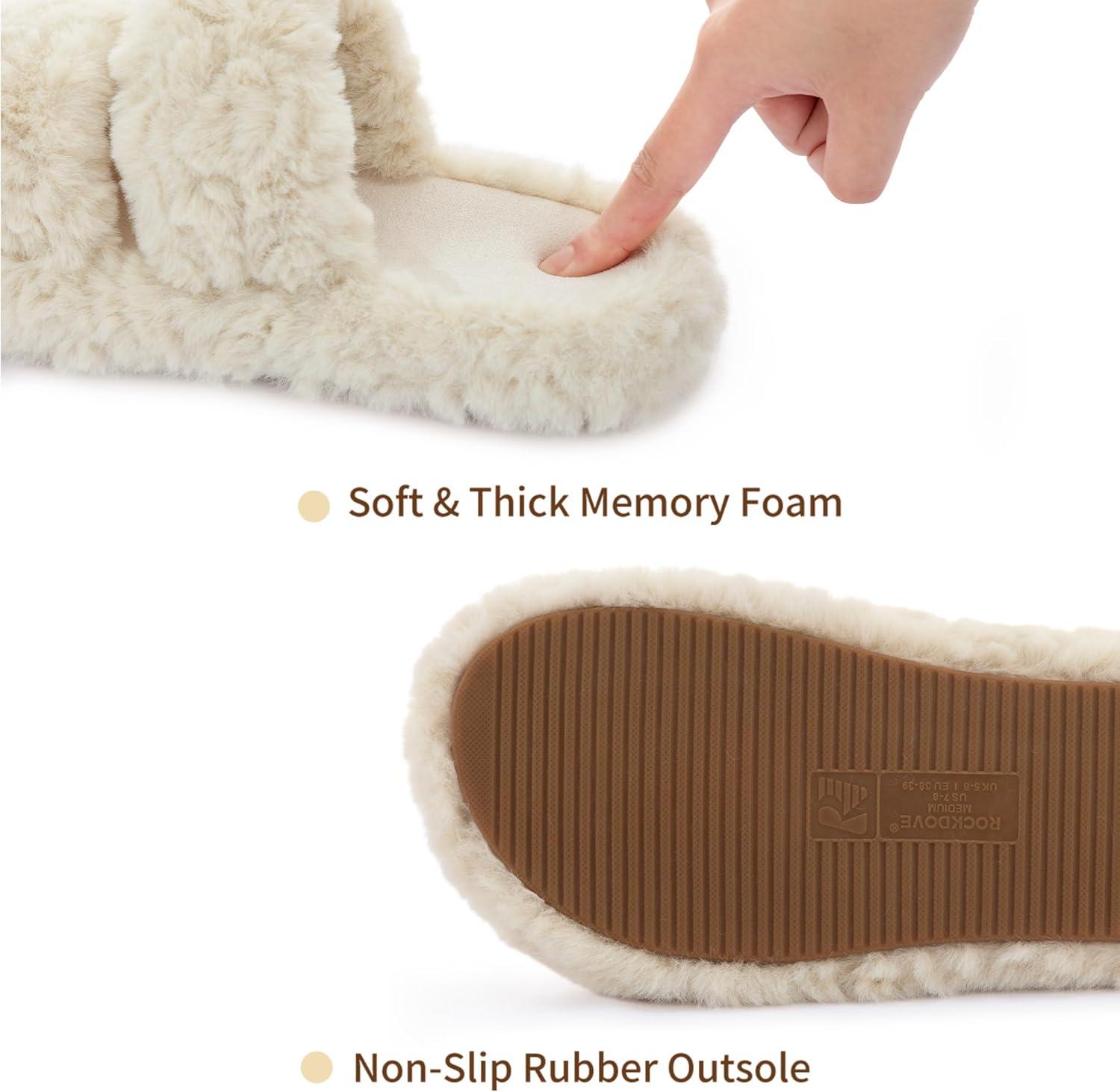 RockDove Women’s Pluffie Slippers with Arch Support & Memory Foam, Cozy Faux Fur Open Toe House Shoes, Gift-Ready Indoor Outdoor Comfort(Beige)
