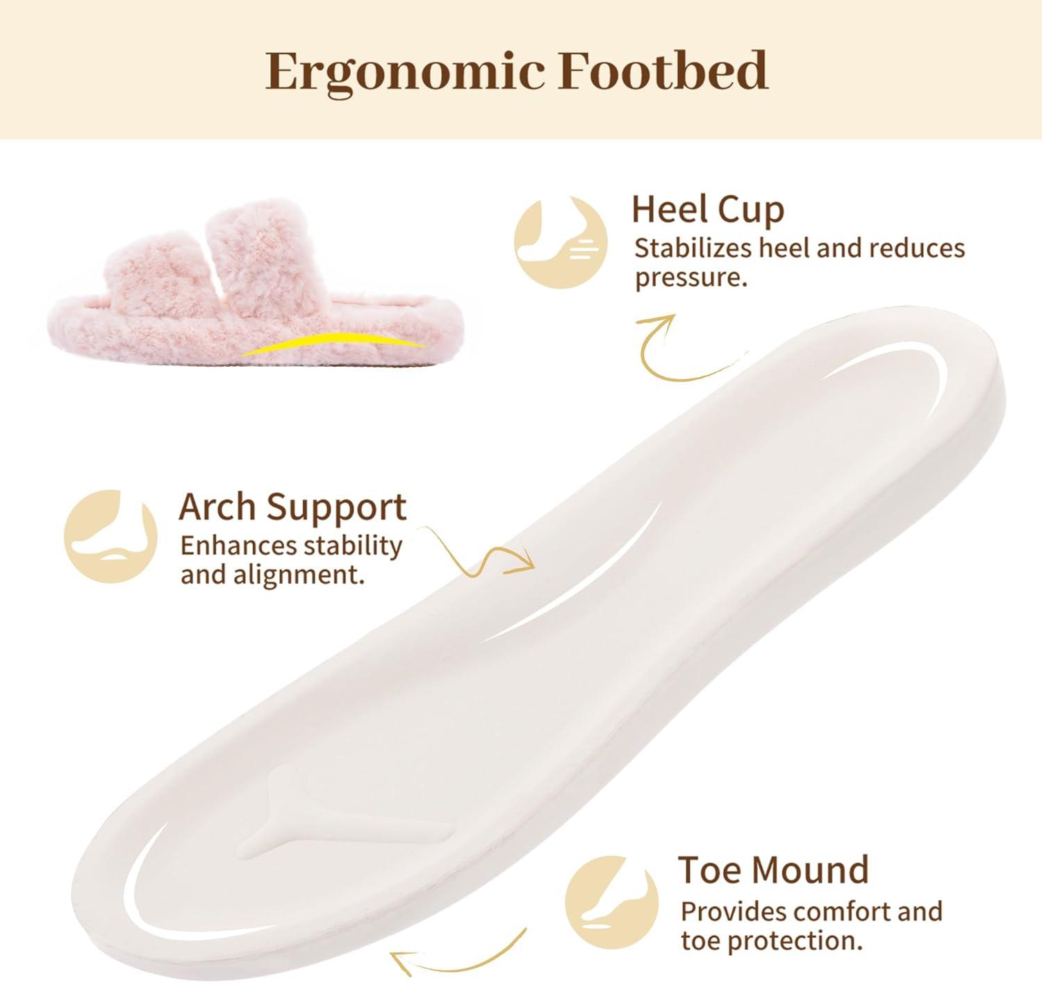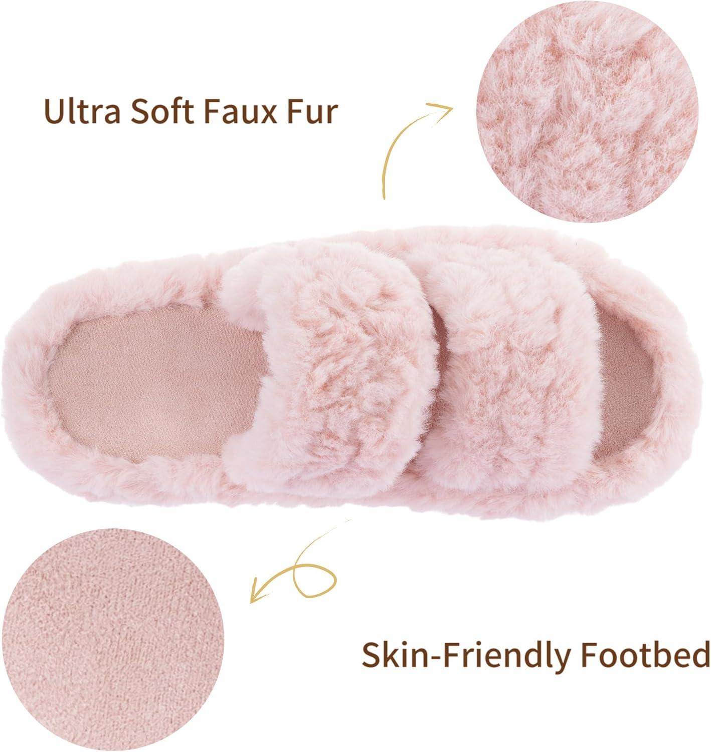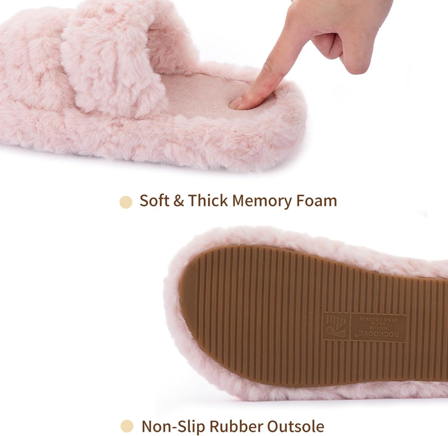 RockDove Women’s Pluffie Slippers with Arch Support & Memory Foam, Cozy Faux Fur Open Toe House Shoes, Gift-Ready Indoor Outdoor Comfort(Light Pink)
