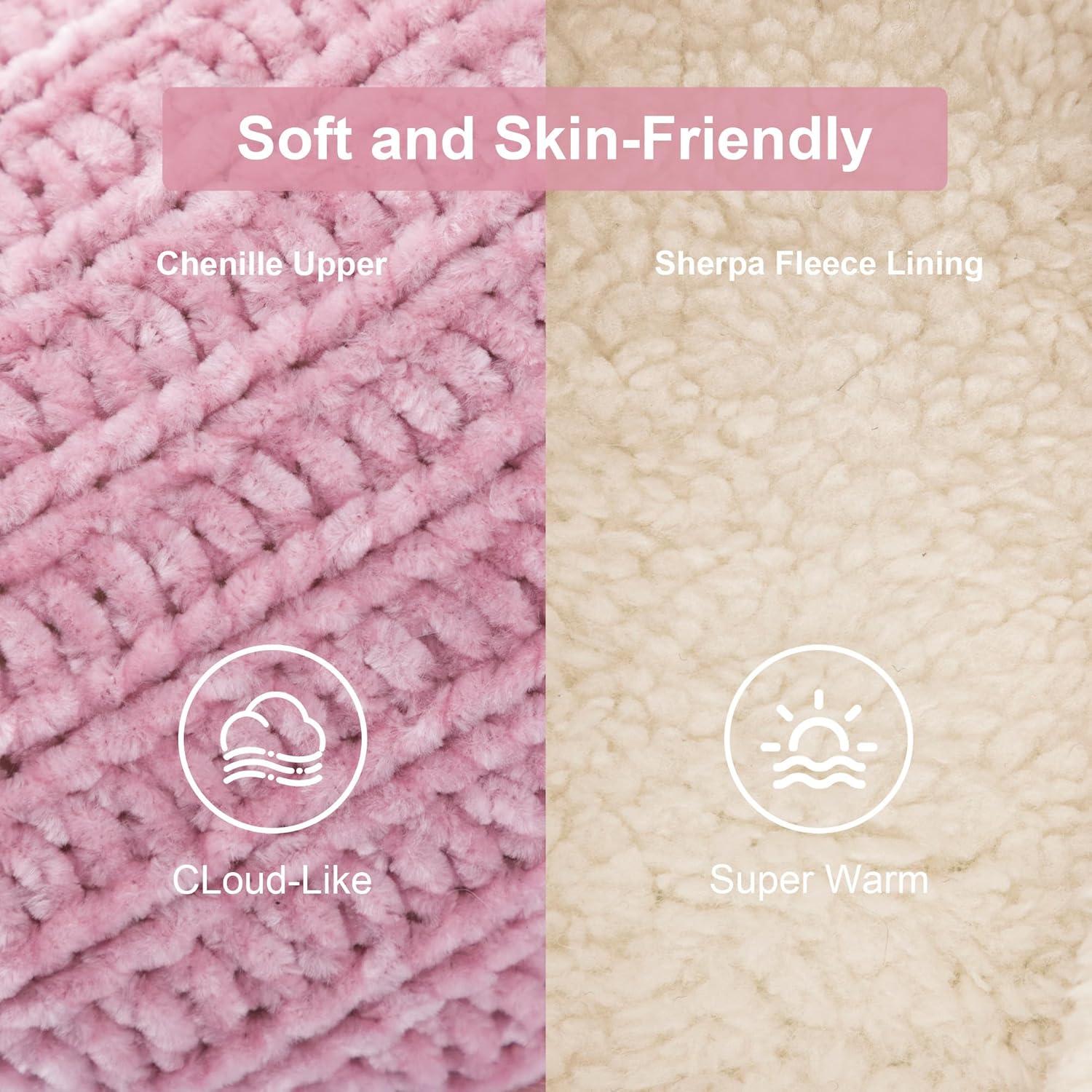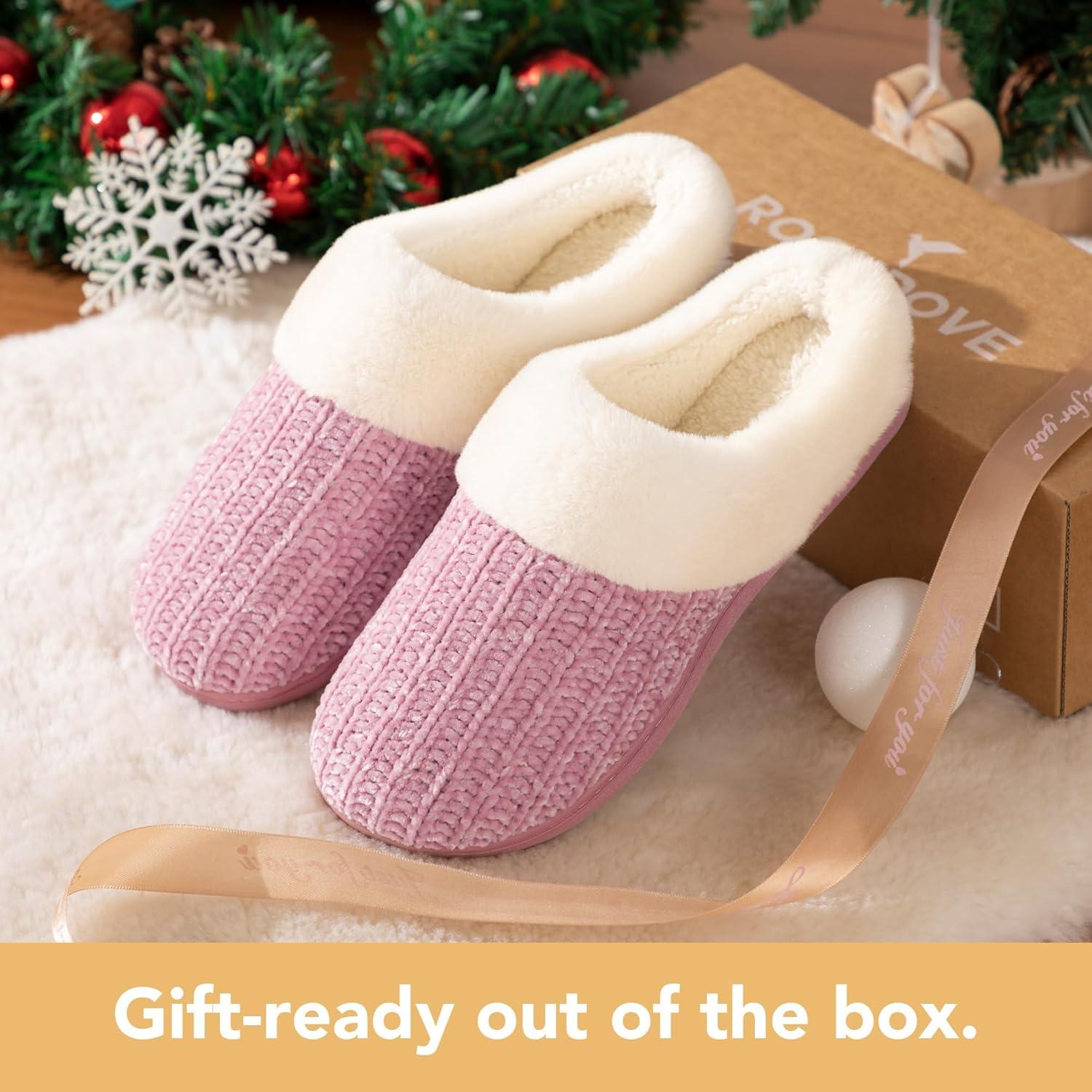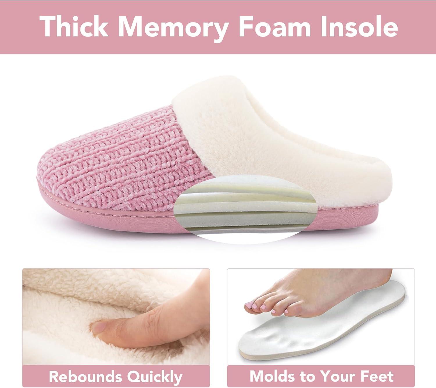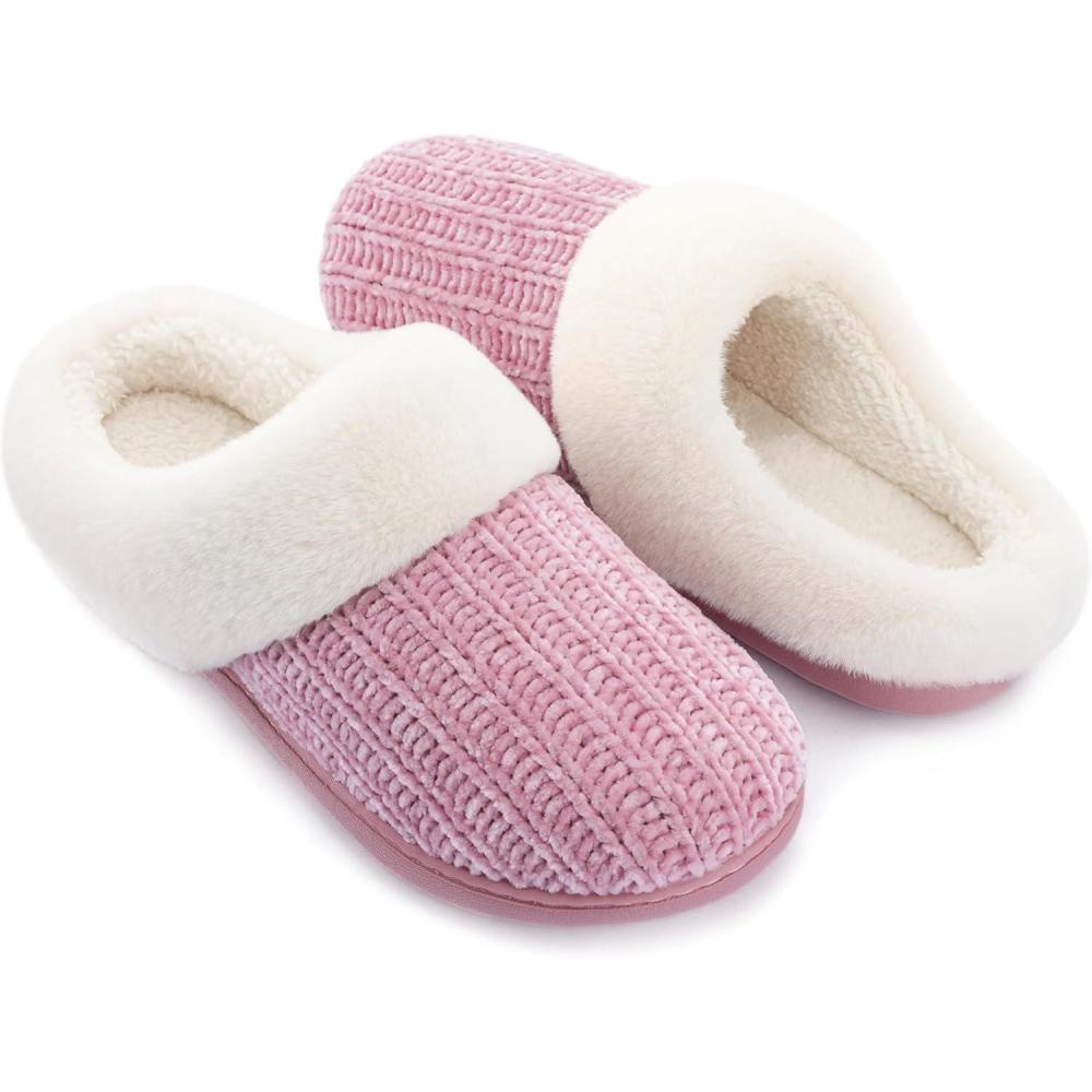 RockDove Women’s Plushloom Warm Chenille Knit Cute House Slipper with Sherpa Fleece Lining Memory Foam Cushion and Non Slip Sole(Pink)